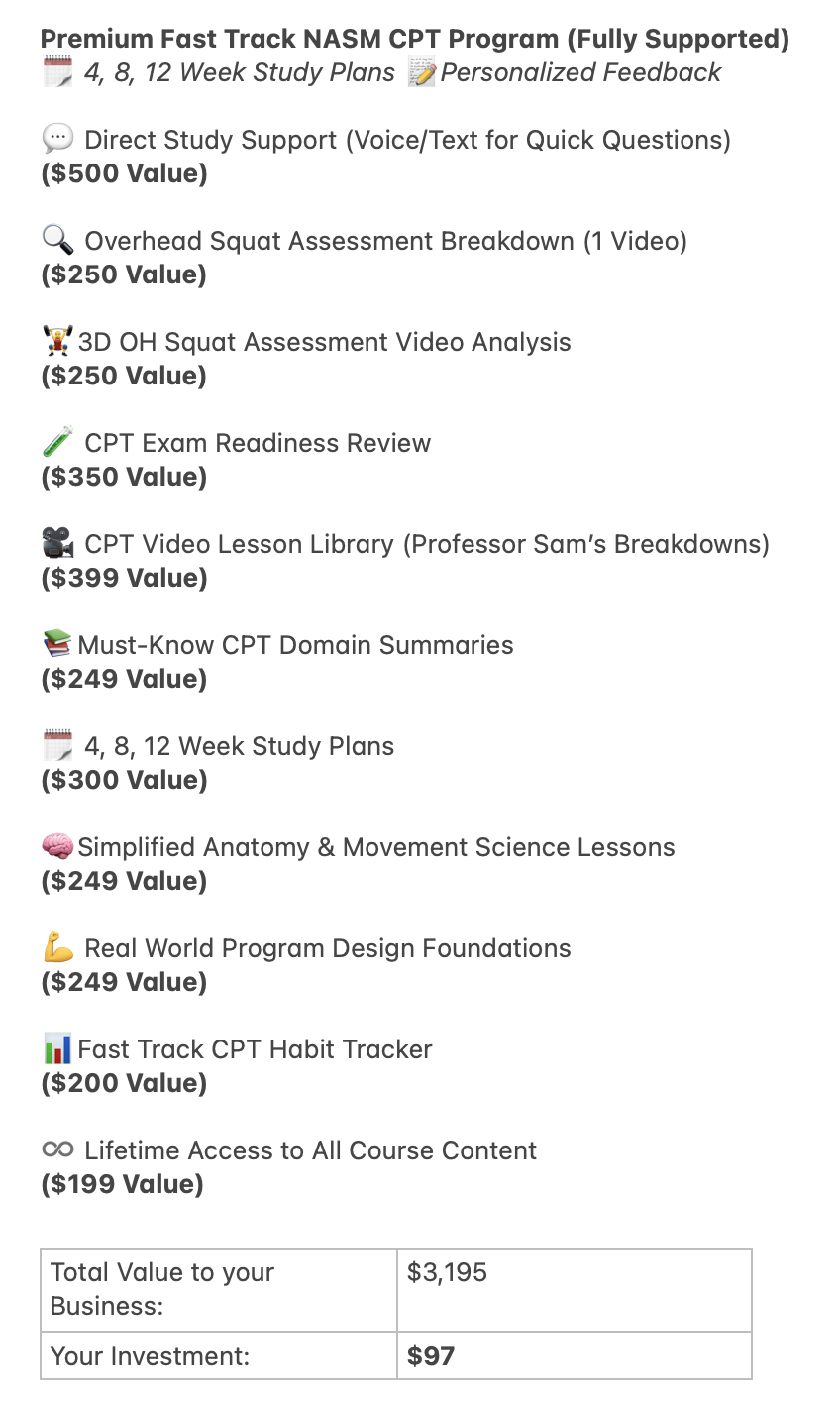 Premium Fast Track NASM CPT Study Support